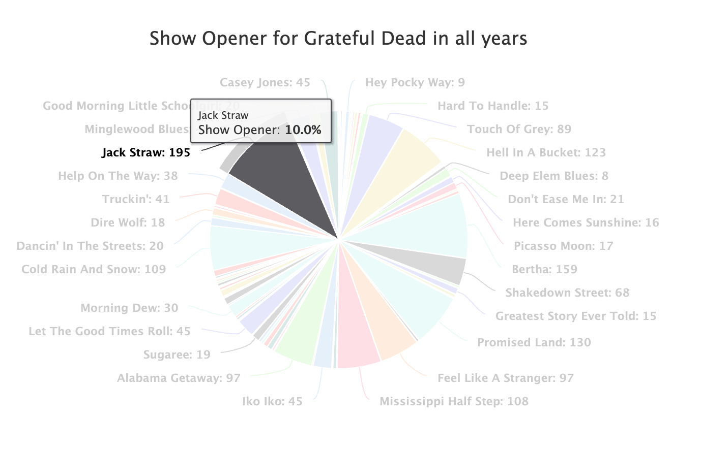 The song the Dead most often used as an opener was “Jack Straw”. While a great song, it’s far from their best. It surprises me that this is the song they most often used to start shows off. It’s likely that it helped the band get into a groove.