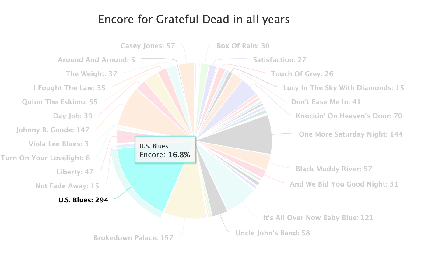 According to Grateful Stats, that song is “Dark Star”. Which does not surprise me. This song is the most psychedelic and improvisational one in the catalog, and one that I find passionate Dead Heads talk about the most. It captures so much of the essence of what made the Grateful Dead unique and innovative.